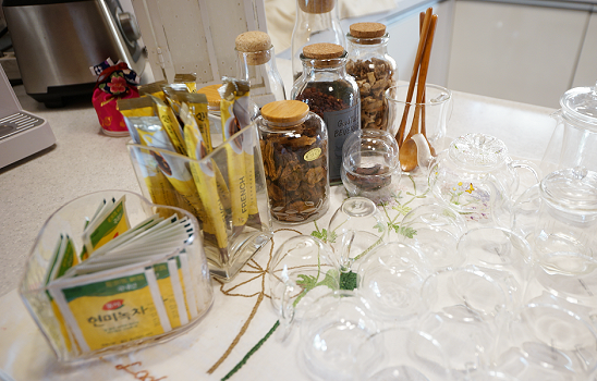햇살가득에는 커피 및 녹차와 다양한 전통차가 준비되어 있어 셀프로 이용이 가능합니다.